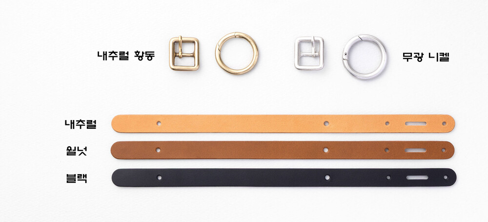 9가지 색상의 가죽과 3가지 색상의 스트랩, 2가지 색상의 금속 장식으로