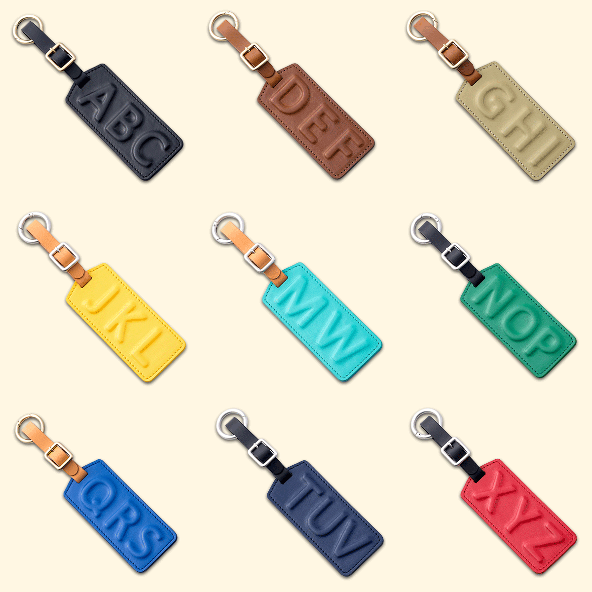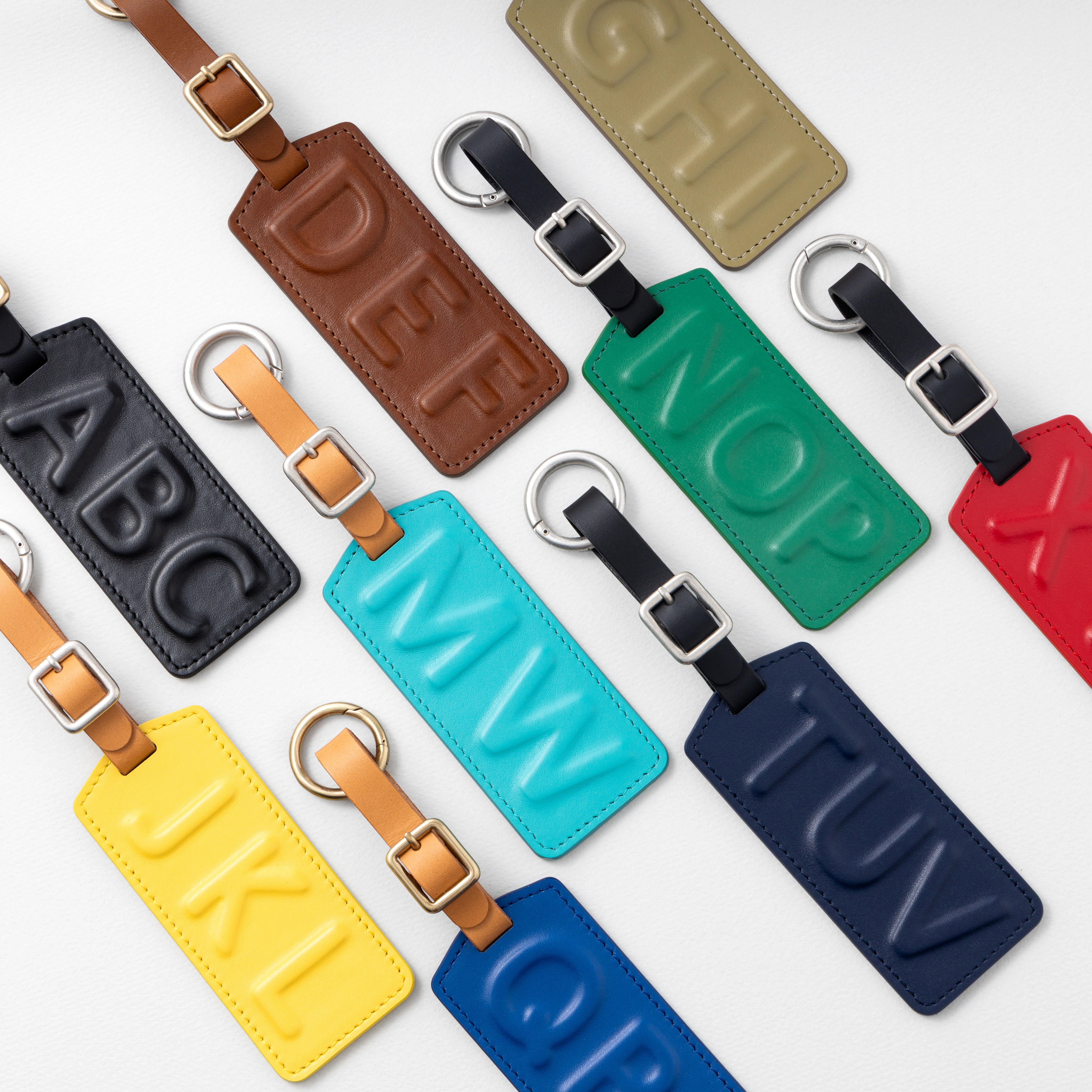 지갑, 가방, 파우치에 포인트로 - 여행의 설렘을 담은 러기지택으로 다양한 순간에 나를 표현하는 특별한 이니셜 굿즈로 완성했습니다.